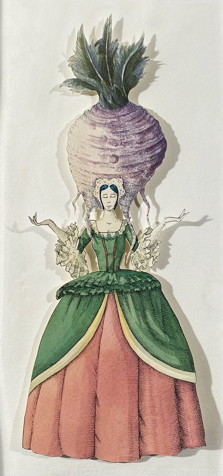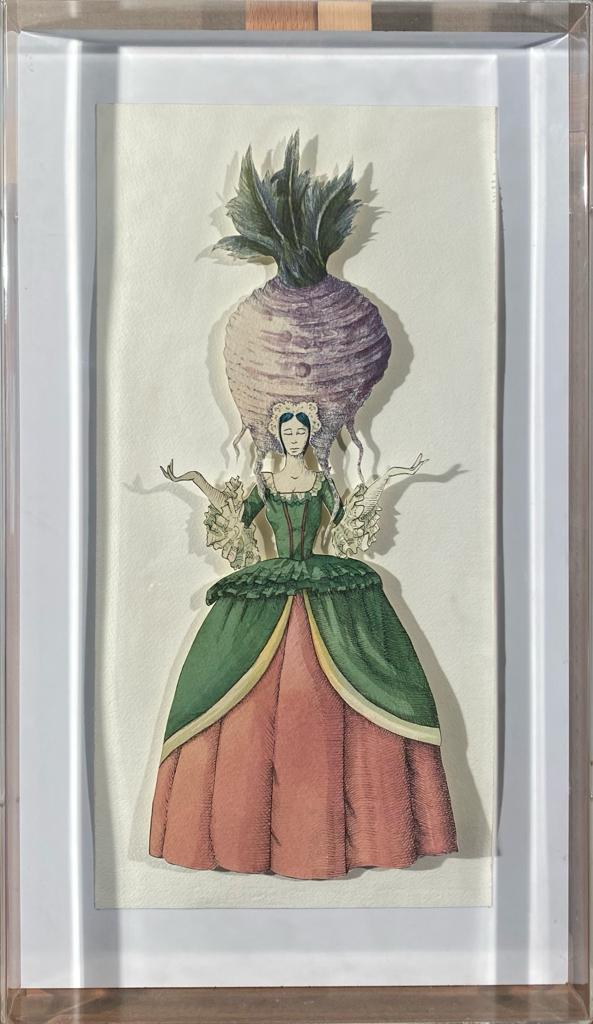 Mista e collage di cartoncini in teca di plexiglass