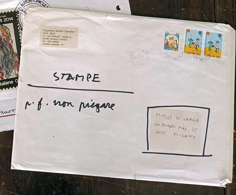 Firma e anno in basso. Dedica ad personam su cartolina centrale (Miklos Varga).