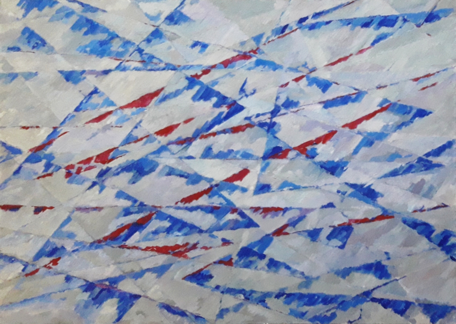 PALUMBO EDOARDO Napoli 1932-2018 “La via dell’agguato” acrilico su tela cm 50x70 del 1990. Sul retro firmato, datato ed etichetta descrittiva.
