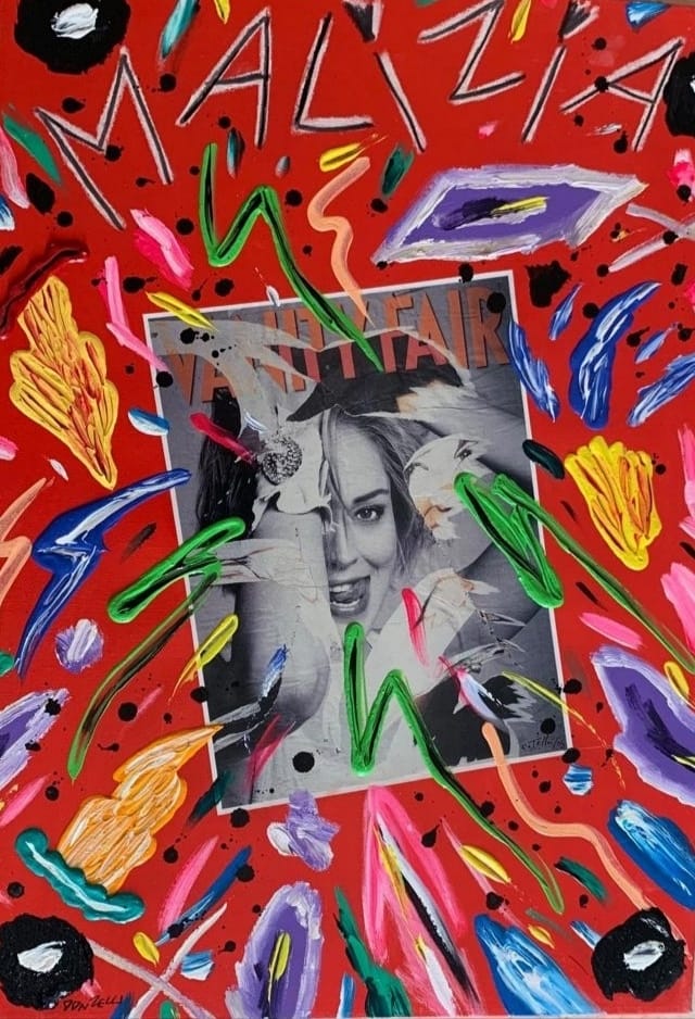 DONZELLI BRUNO Napoli 1942 "Malizia” olio e tecnica mista su tela cm 50x70. Firmato sul fronte in