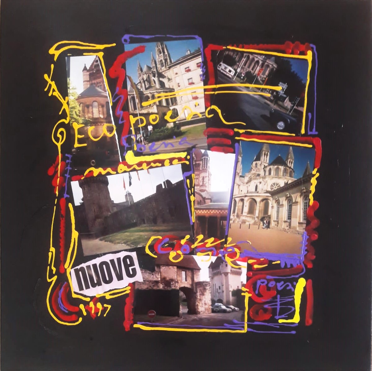 MARCUCCI LUCIA Firenze 1933 "Nuove cose” acrilici e collage su tela cm 50x50 del 1997. Sul retro titolo, firma, data e descrizione della tecnica.