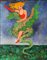 ROMANO DANIELA Napoli 1947-2009 ”Volo di ricognizione” olio su tela cm 40x50 del 1972. Firmato sul fronte in basso a destra. Sul retro titolo, data e firma.