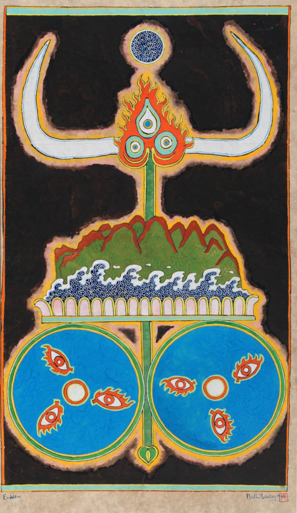 MARTIN BRADLEY 1931 " Emblema ", 1970 Gouache su carta telata, cm. 105 x 61 Firmato e datato in basso a destra Etichetta Galleria Cafiso, Milano sul retro Prov. Collezione Privata