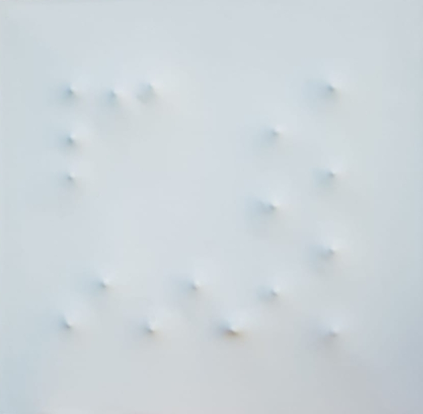 BRESCIANINI ANGELO Brescia 1948-2016 “N° 17 spari di fucile cal.30 e pistola 44” su lastra di alluminio cm 100x100 colore bianco. Sul retro l’opera è firmata e descritta. Autentica su due foto fronte e retro.