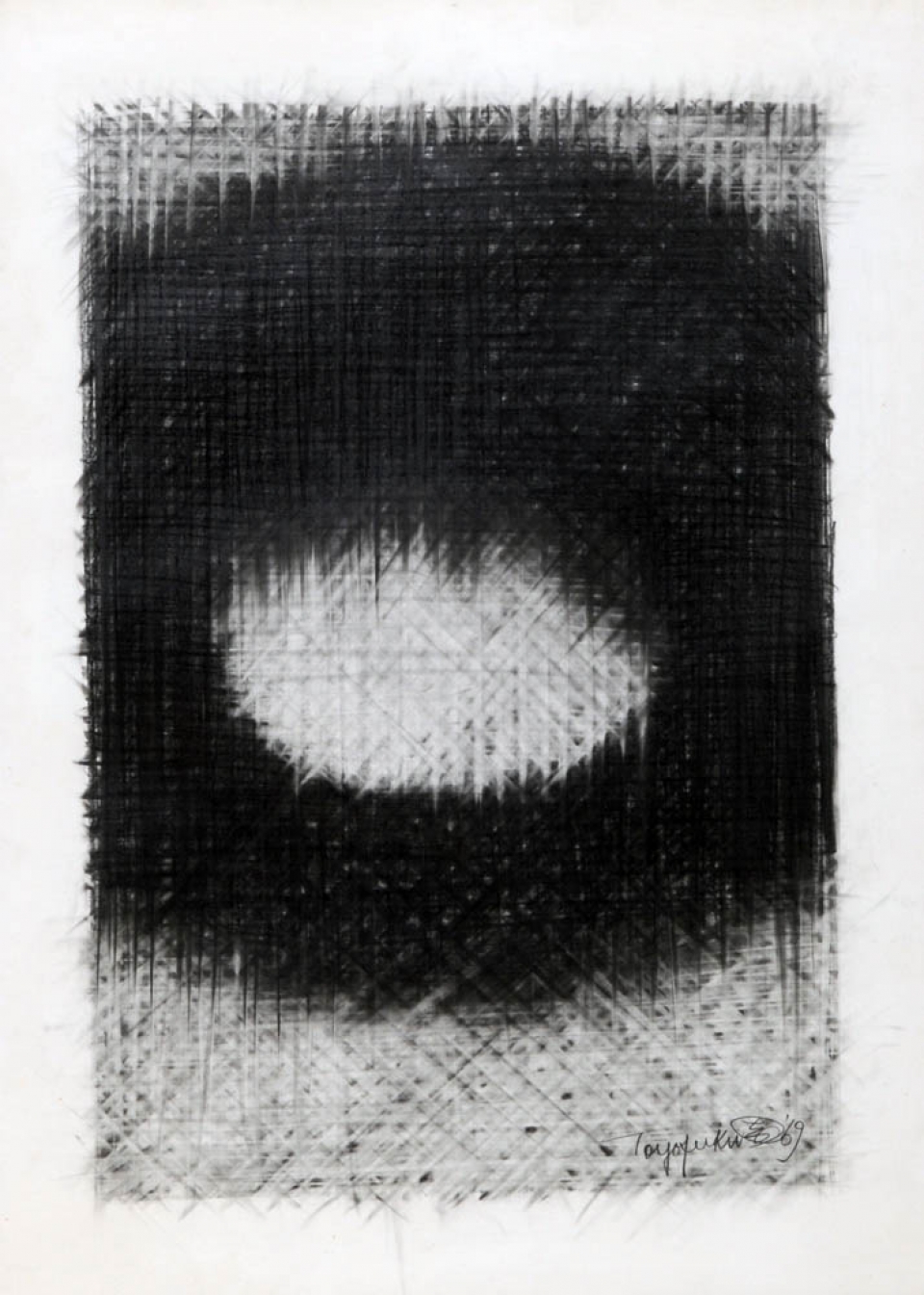 TOMONORI TOYOFUKU 1925 Senza titolo, 1969 Tecnica mista su carta, cm. 70 x 50 Firmato e datato in basso a destra Timbro Galleria d'Arte Cavour, Milano sul retro Timbro Collezione Loed Rudegh sul retro Prov. Collezione Privata