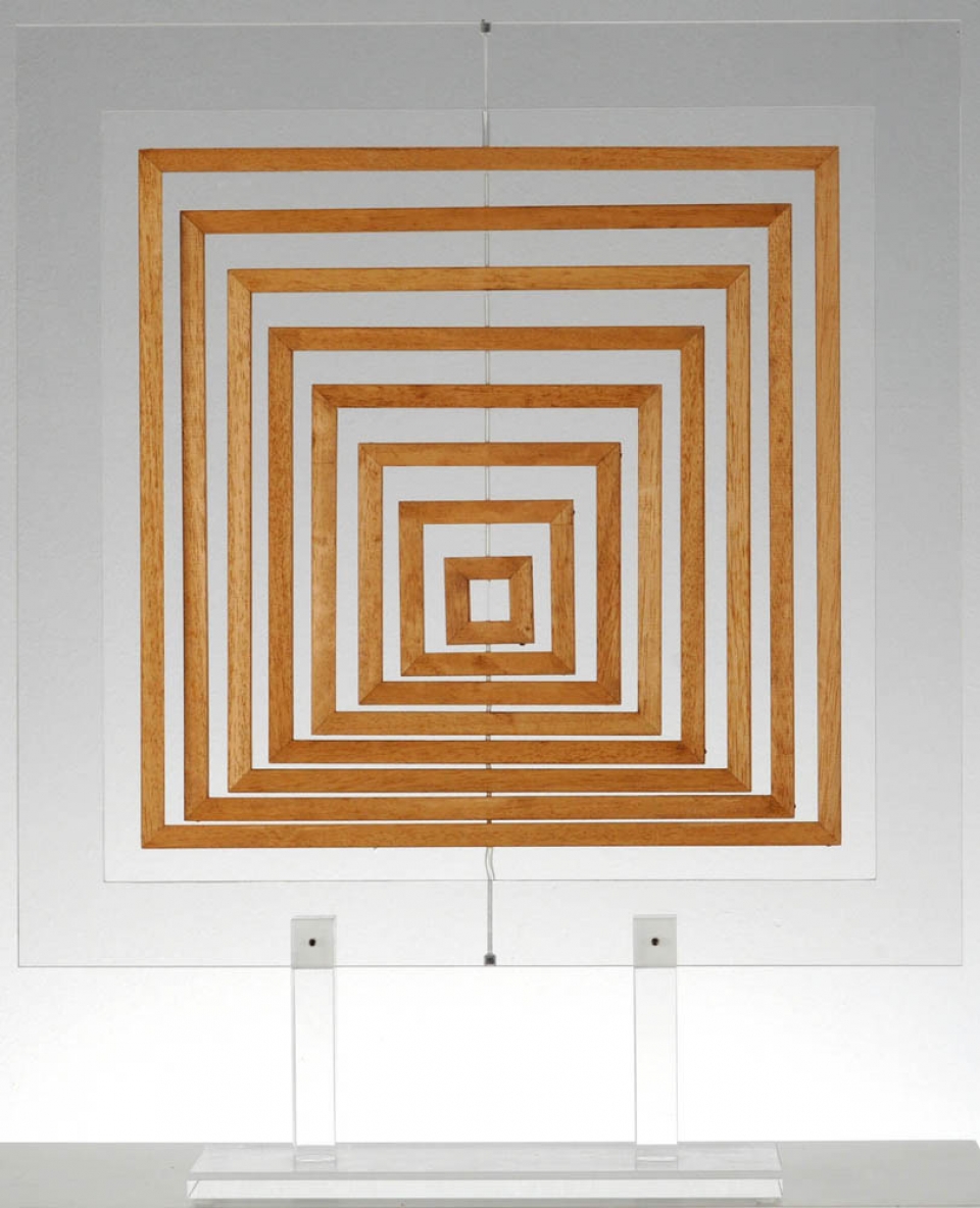 ENNIO CHIGGIO 1938 " Quadrati rotanti ", 1961/1969 Scultura in plexiglass e legno, cm. 40 x 40 x 1 Firmato e datato Autentica dell'artista su fotografia BIBLIOGRAFIA: " Movement as a message ", International Triennale of Contemporary Art, National Gallery in Prague, 2008, p. 174 Prov. Collezione Privata