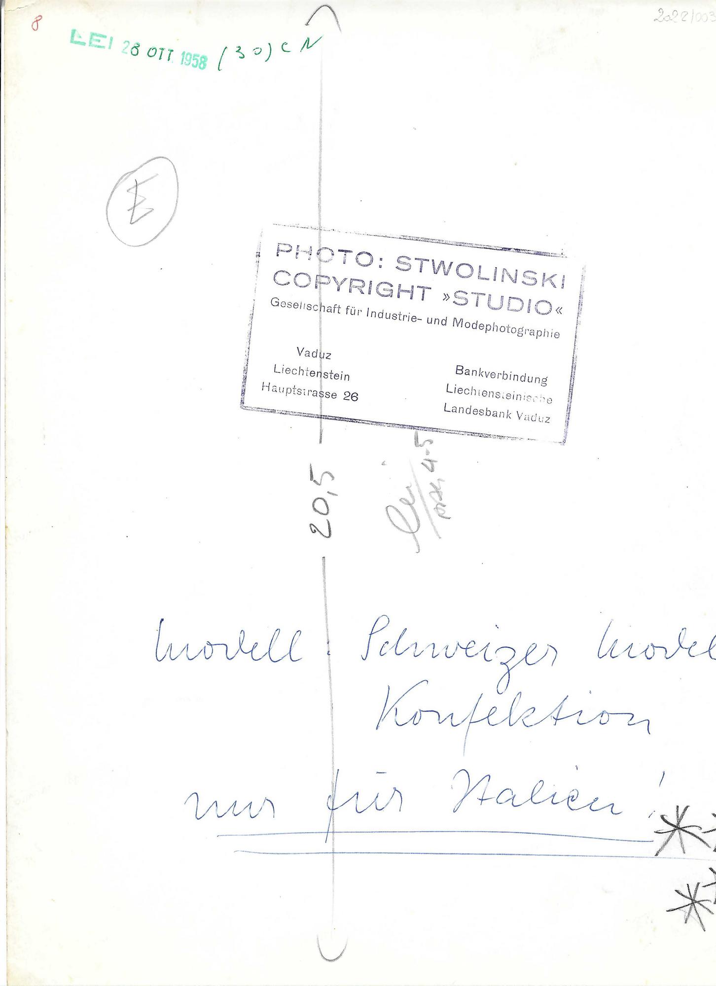 sul retro: timbro dell'agenzia fotografica Stwolinski
