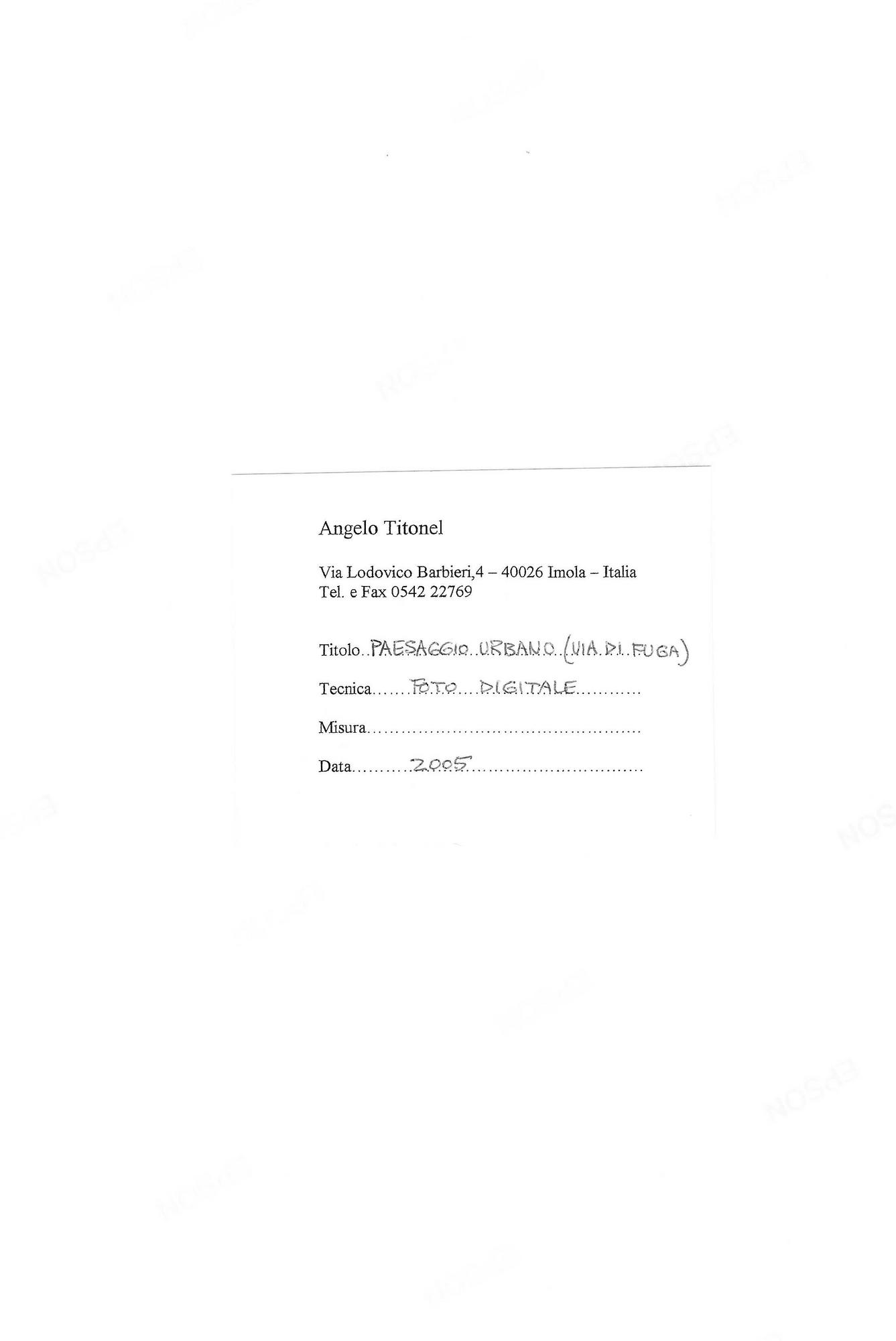Angelo Titonel PAESAGGIO URBANO, VIA DI FUGA fotografia digitale, cm 30x20...