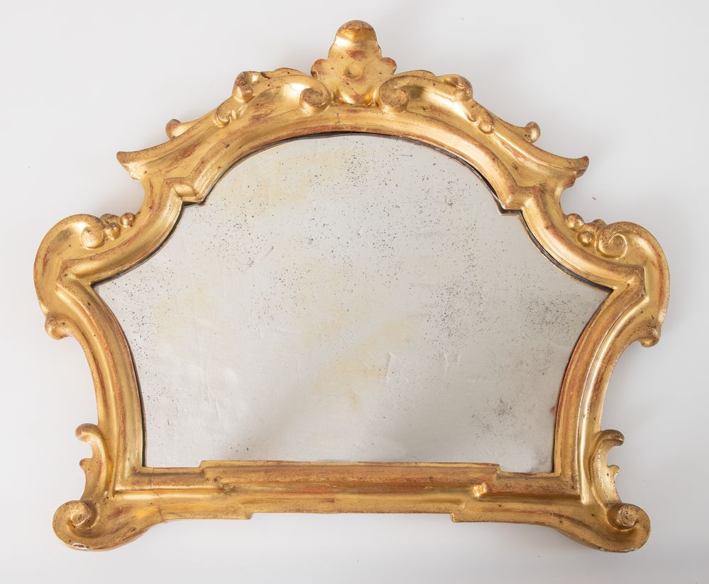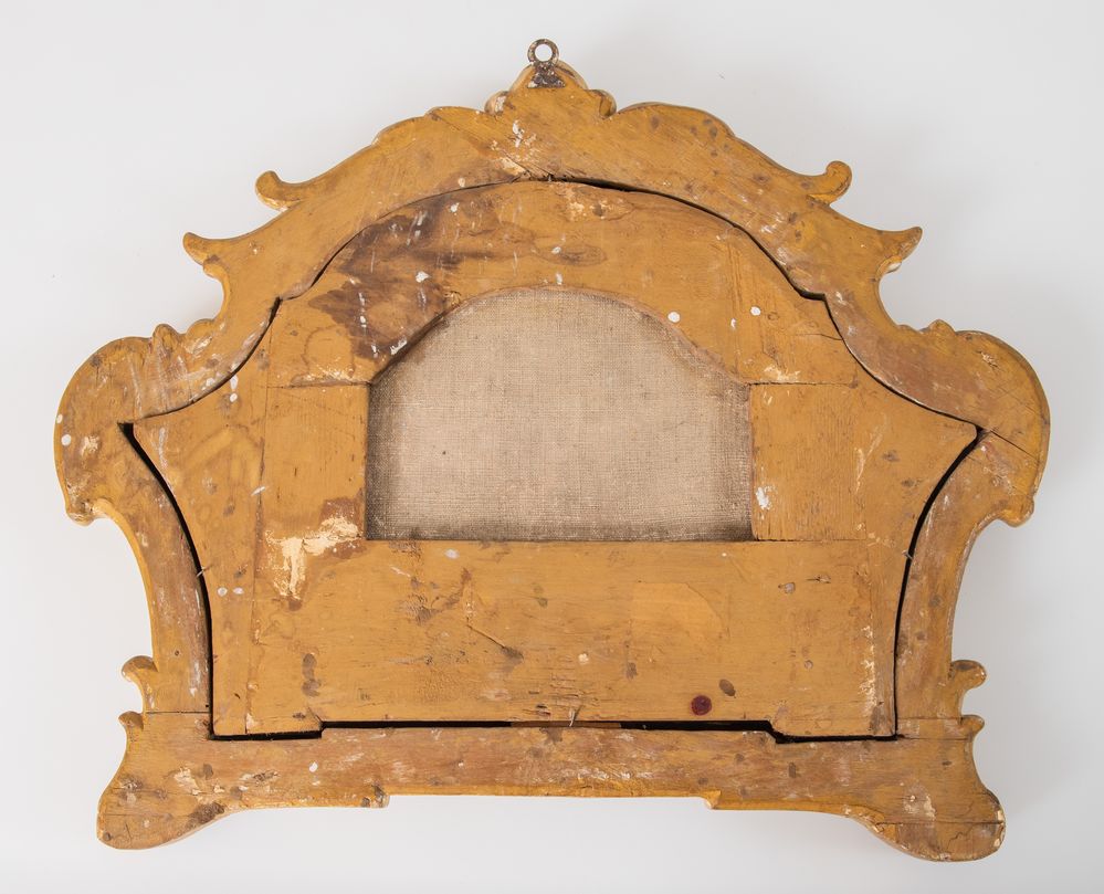 Cantagloria trasformato in specchiera dorata. Emilia, XVIII secolo. Cm 45x55.