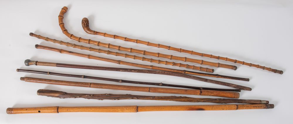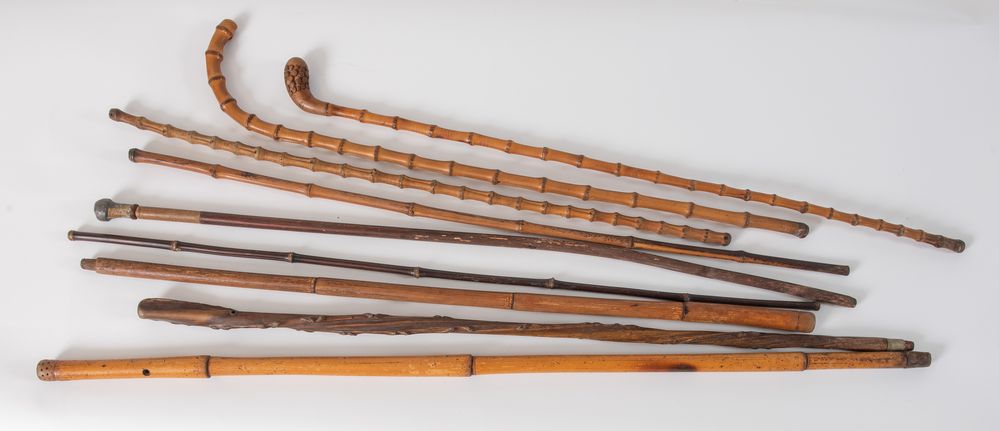 Lotto composto da nove bastoni da passeggio realizzati in varie essenze. Fine...