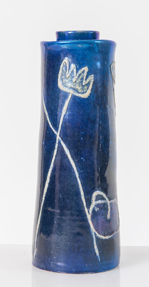 TRAMONTI Vaso in ceramica smaltata. Faenza, XX secolo. Cm 33xØ12,5. Sotto la...