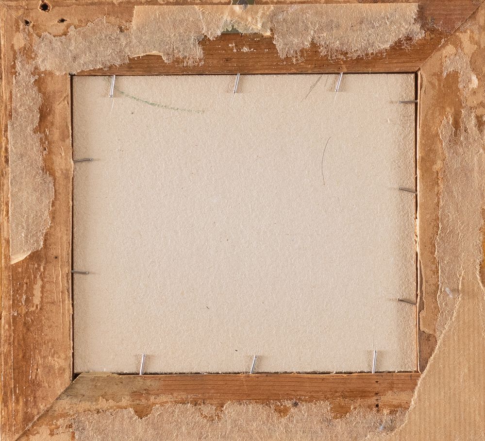 Maestro del XIX secolo. "Scena cittadina con cavalli". Olio su carta. Cm...