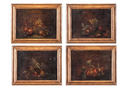 Maestro del XX secolo. Lotto composto da quattro nature morte. Olio su tela. Cadauno di cm 30x40.