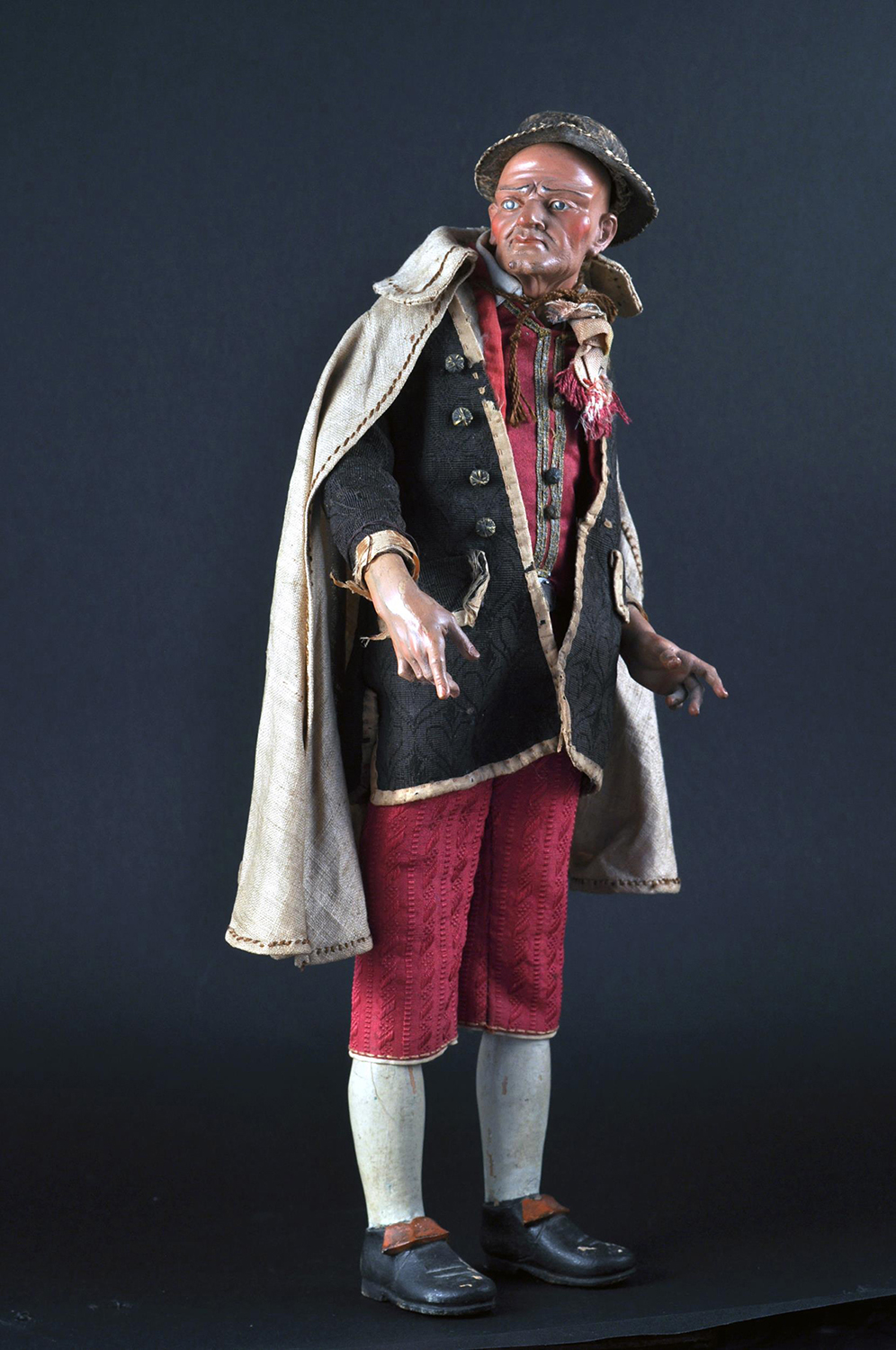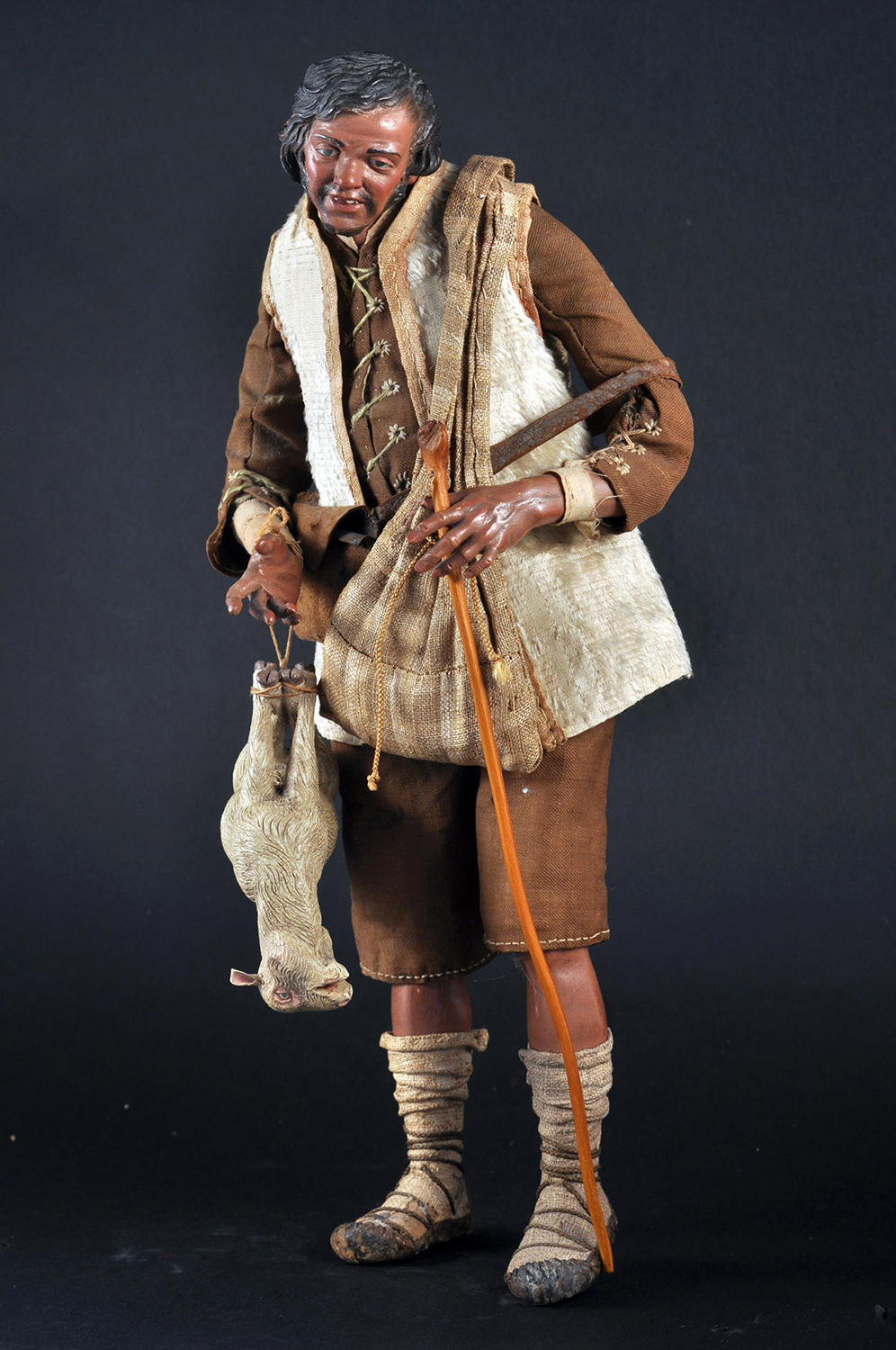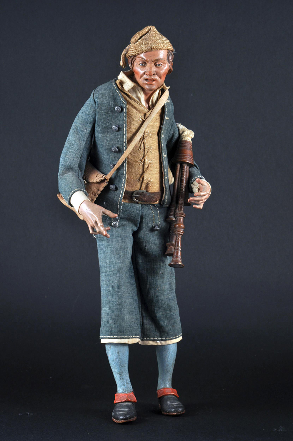 e) Zampognaro, h cm 35 Accessori: tracolla in pelle e zampogna