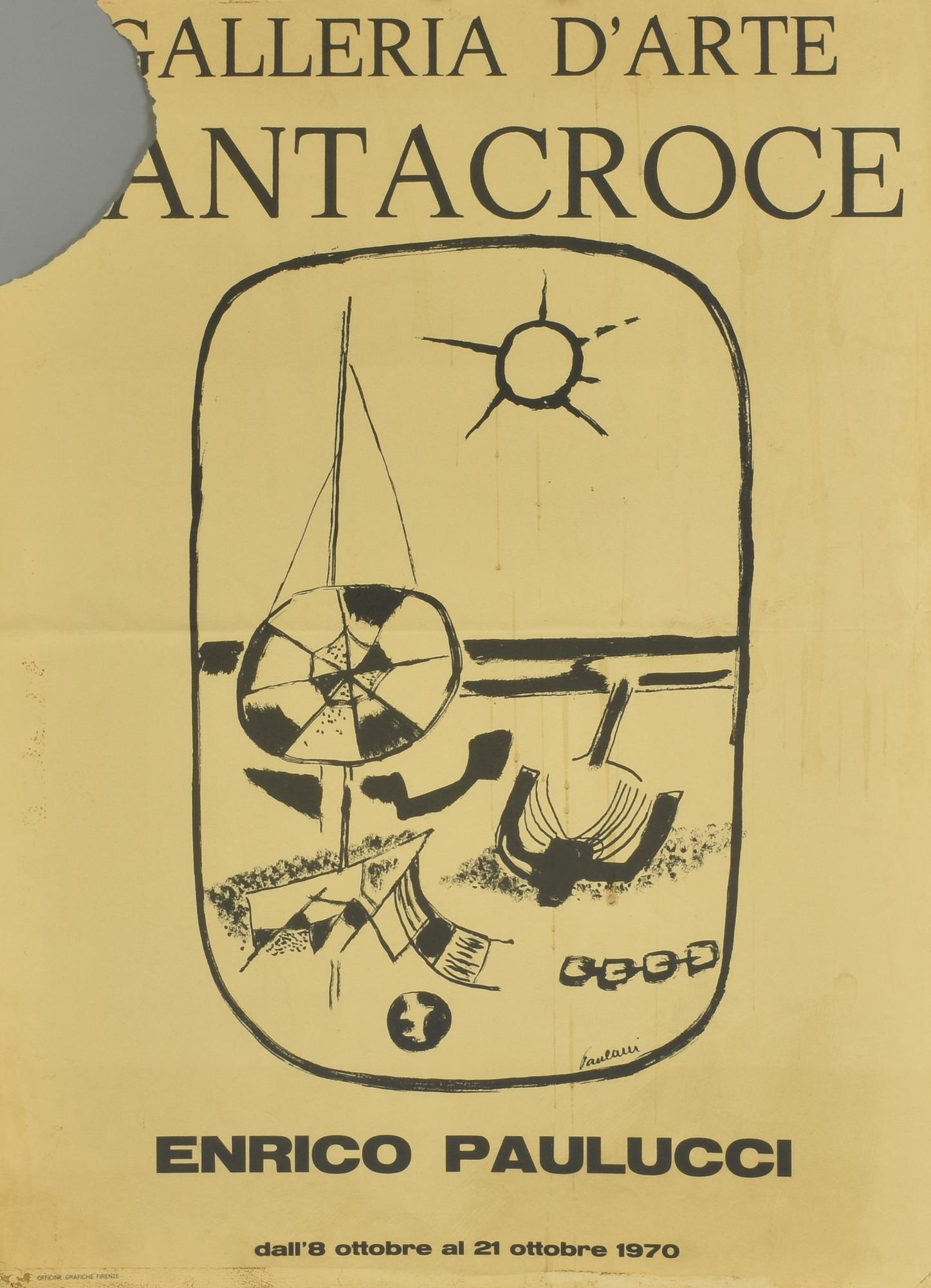 realizzato da Officine Grafiche Firenze per la mostra 'Enrico Paulucci' tenutasi alla Galleria d'Arte Santacroce nell'ottobre 1970