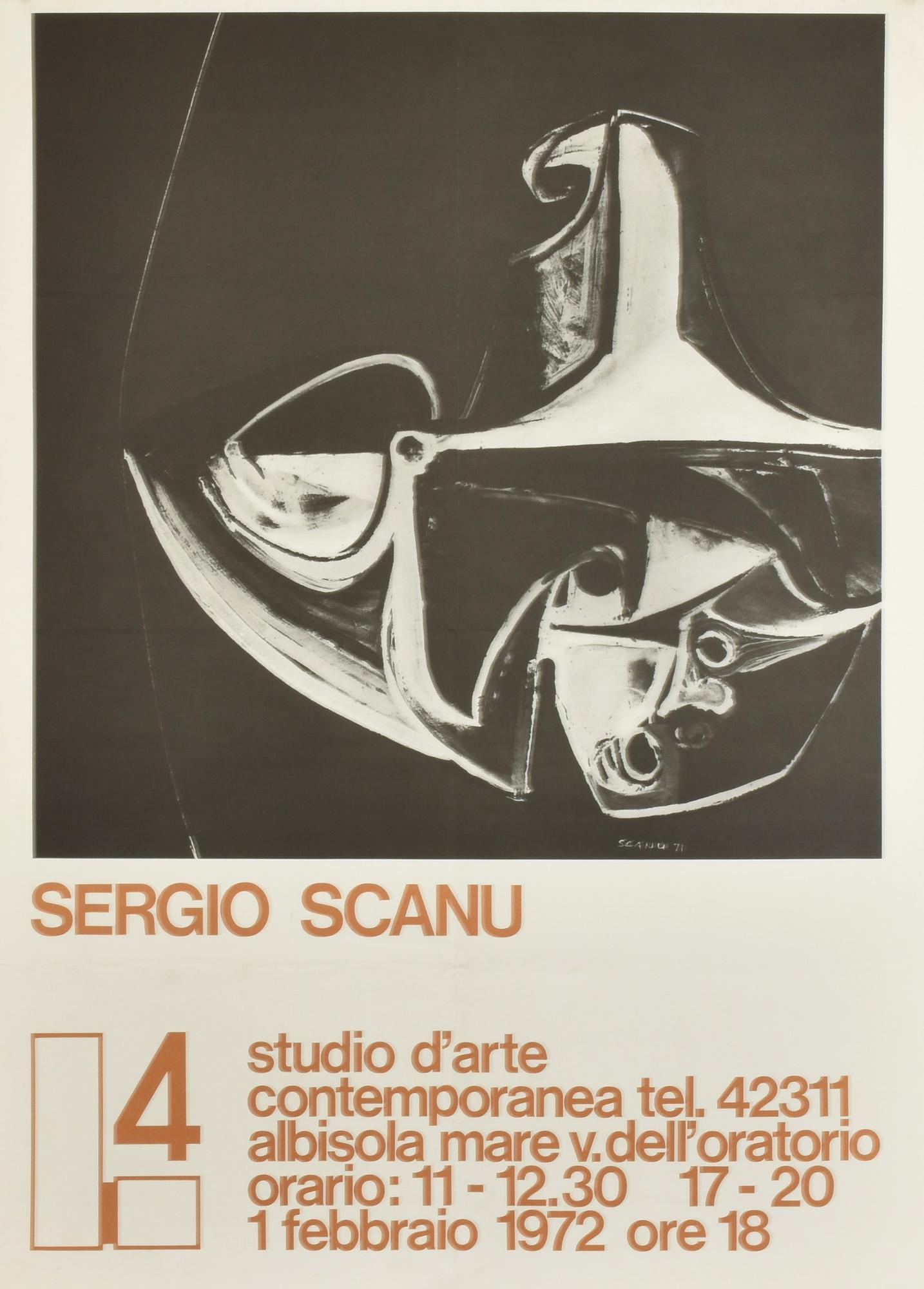 autoprodotto da Studio d'arte contemporanea Albisola Mare per la mostra 'Sergio Scanu' tenutasi allo Studio d'arte contemporanea Albisola Mare nel febbraio 1972