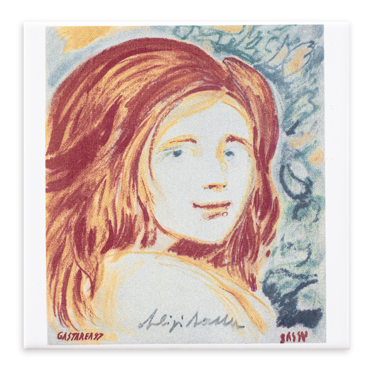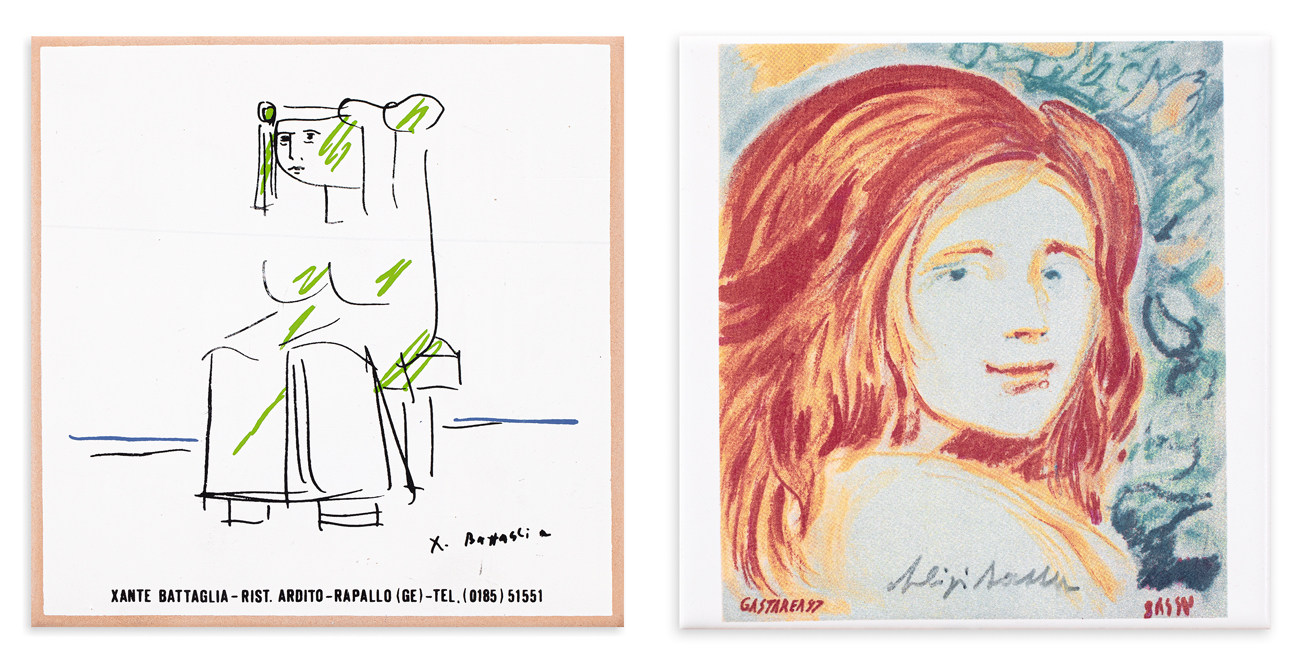 2 ceramiche serigrafate di Aligi Sassu (firma a pennarello al fronte) e Xante Battaglia (firma a pennarello al fronte)