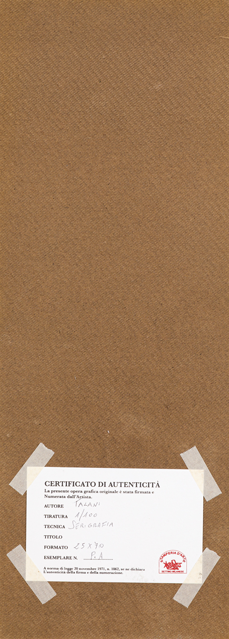 Certificato di autenticità a cura de La Stamperia d'Arte di Settimo Milanese al retro