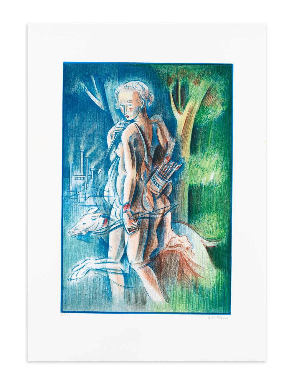 Firma, titolo e numerazione ( Esemplare P.D.A.) a matita al fronte