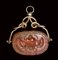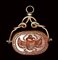 A large etruscan carnelian engraved scarab mounted in a late 19th century gold seal. Winged scarab. Early 5th century B.C.