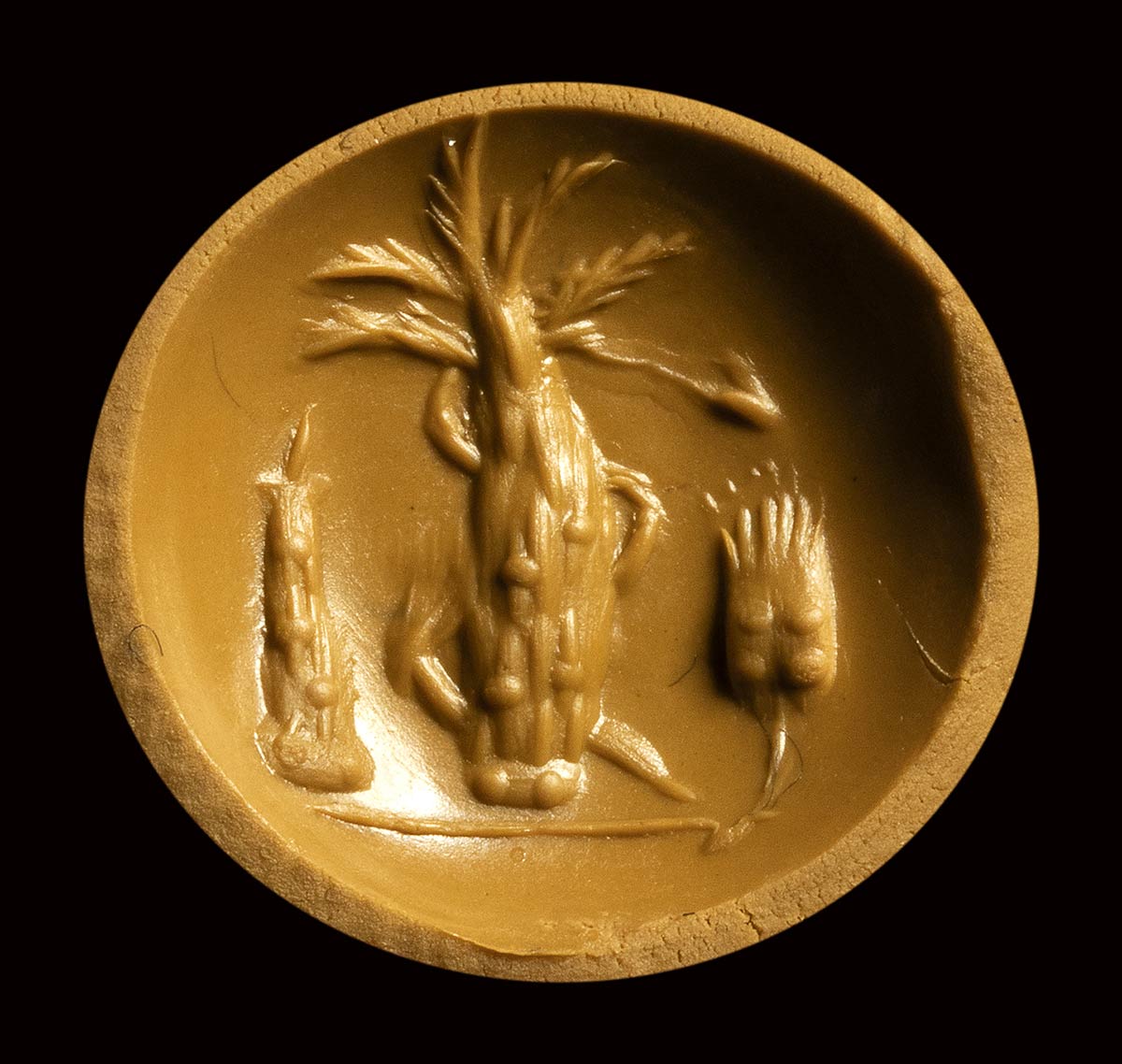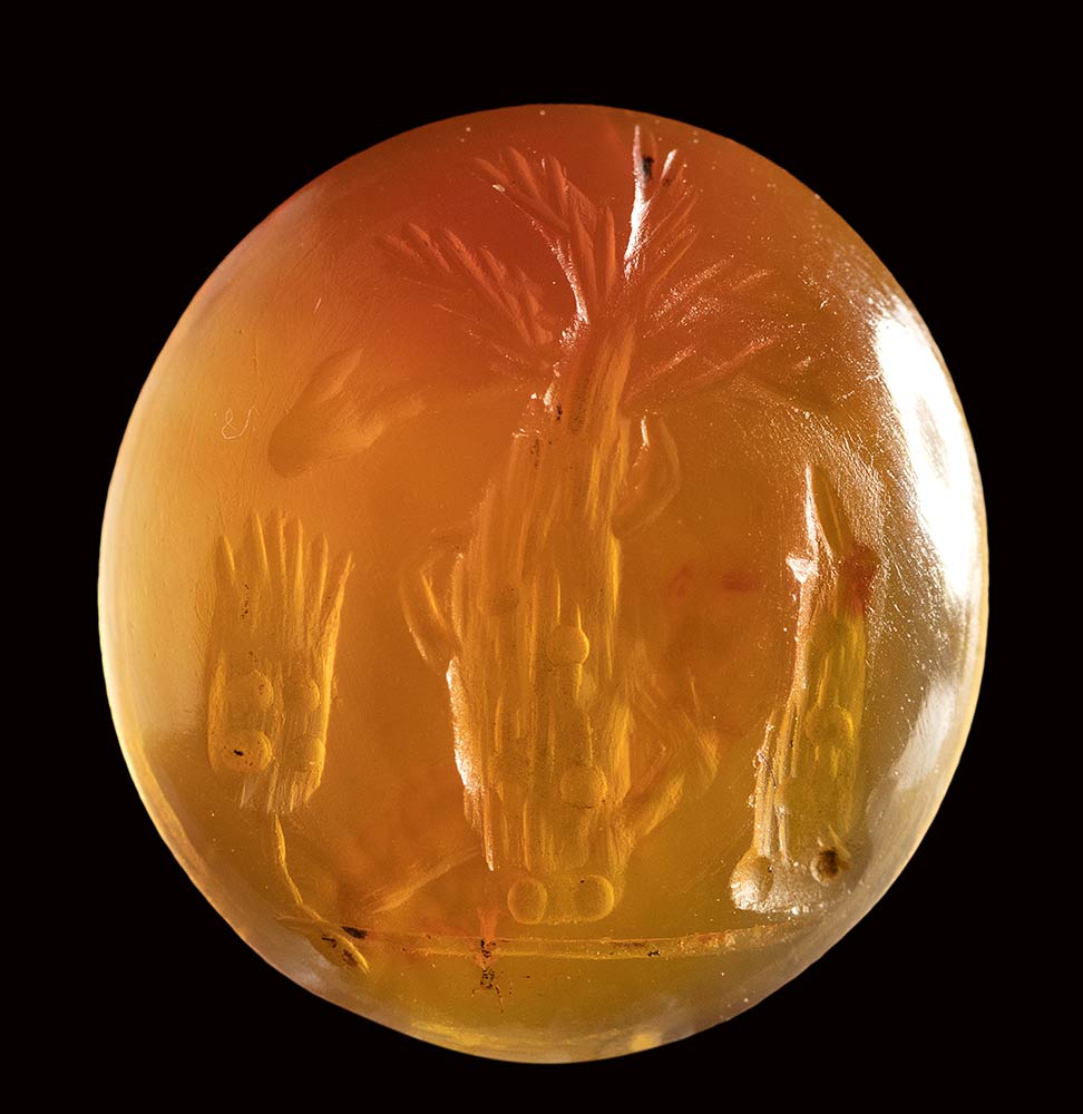 A roman italic carnelian intaglio. Palm tree with attributes.<br><br>1st century B.C.