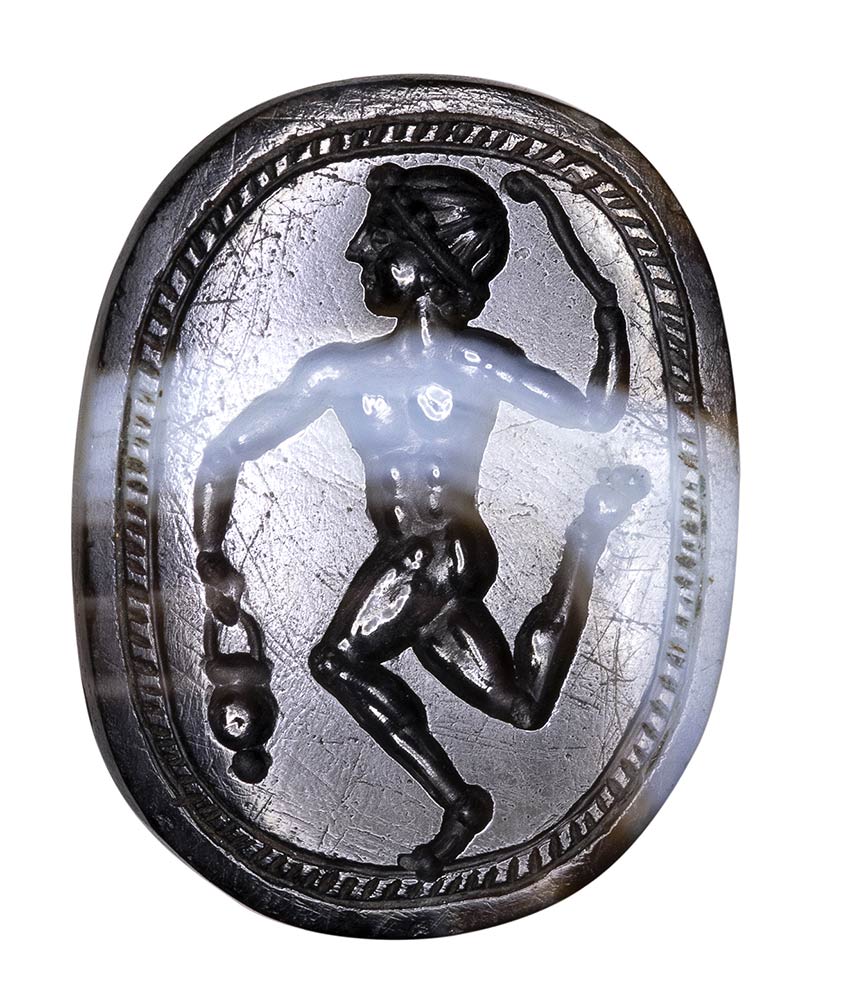 An italic banded agate engraved scarab. Athlete. <br><br>3rd - 2nd century B.C.