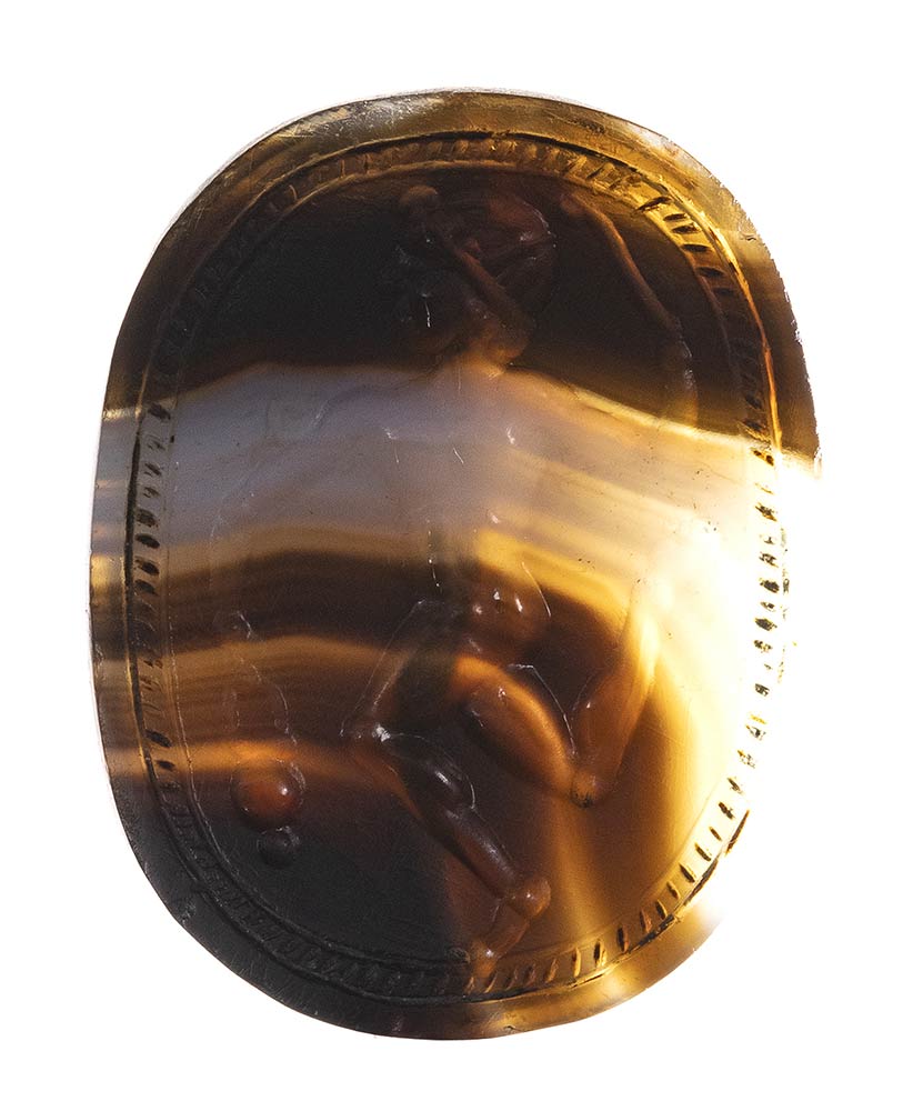 An italic banded agate engraved scarab. Athlete.