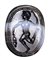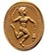 The back with naturalistic details and large border and the underside with engraved design: an athlete presented with his naked body in motion, the bust in front, meanwhile legs and head are toward left. Each arm holding a toilet accessory; strigil and an ointment vase. He is characterized by a strong musculature raised with engraved details, thighs and calves. His hair adorned with a band. Hatched border. Use of globular elements typical of the italic productions with an inspiration from the etruscan engraved scarab workshops. Wear marks.