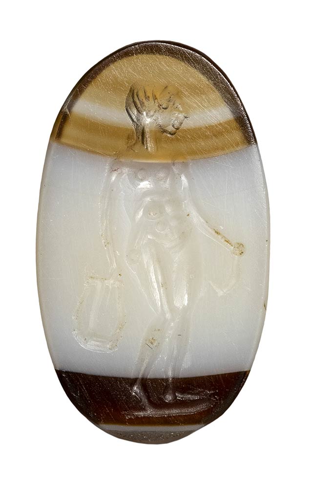 A large roman italic banded agate intaglio. Male figure with attributes.<br><br>2nd century B.C.