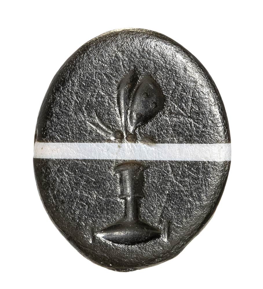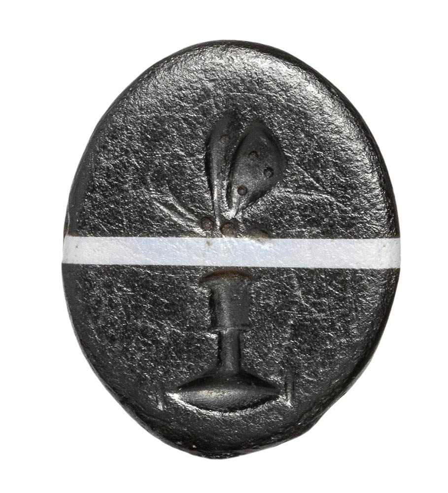 A roman banded agate intaglio. Allegorical emblema with a butterfly.
