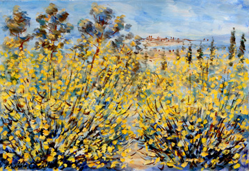 CASCELLA Michele (Ortona (Ch) 1892 - Milano 1989) Ginestre olio su tela, cm. 35 x 50 Autentica dell'artista su fotografia Firma 'Michele Cascella' (in basso a sinistra) #Firma 'Da me dipinto Michele Cascella' (al retro)