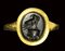 A roman obsidian intaglio mounted on a modern gold ring. Eagle on altar.