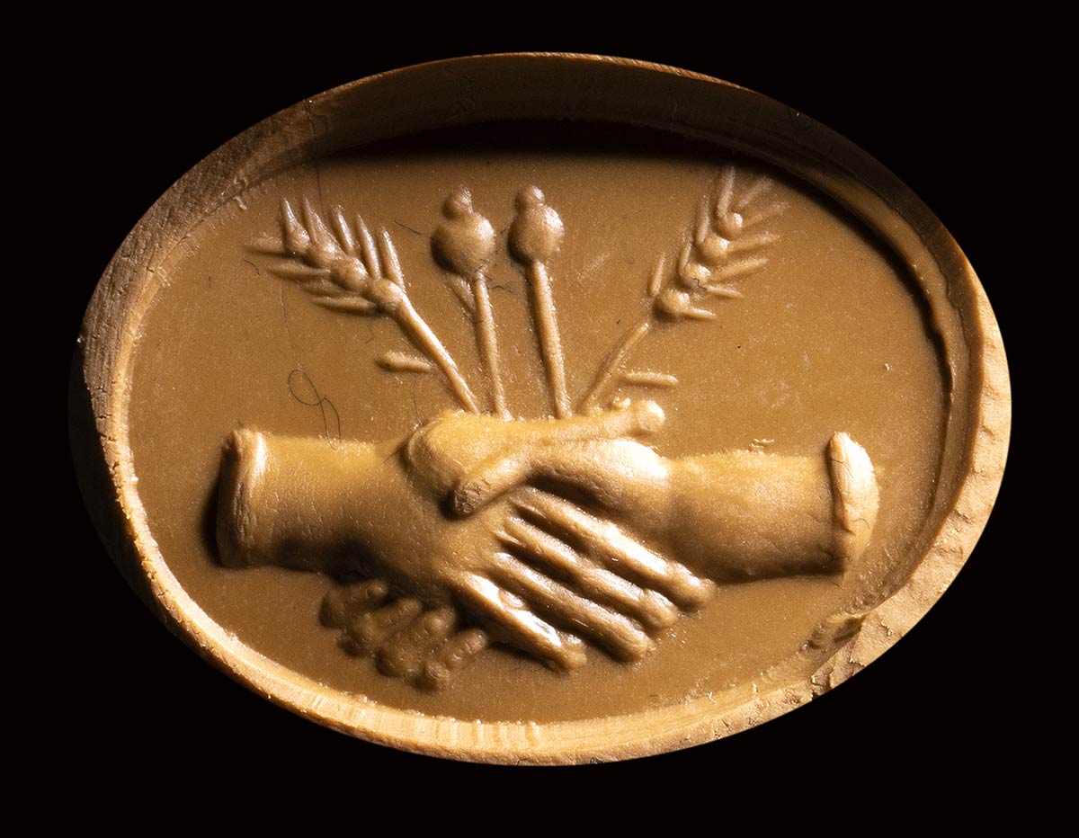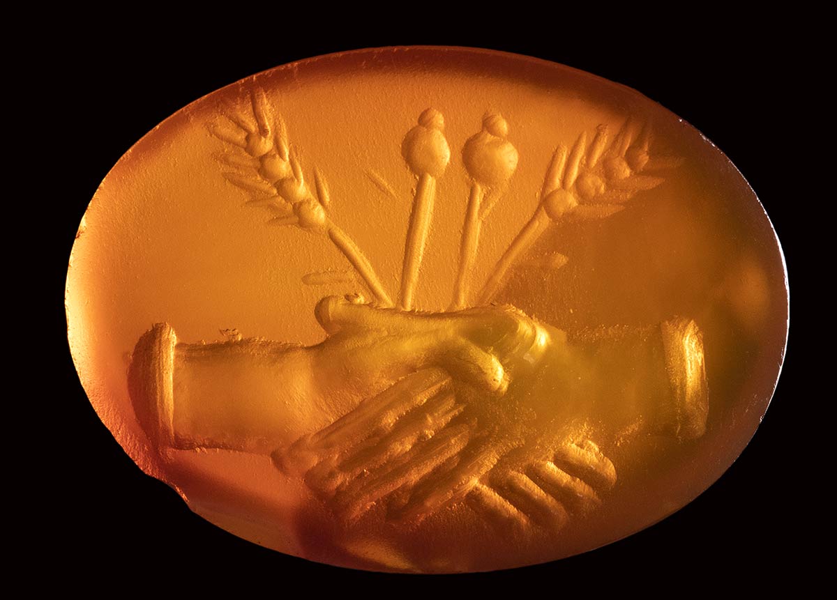 An italic carnelian intaglio. Dextrarum junctio.