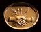 The scene depicts two hands clasping and holding poppy flowers and ears of corn. Wear marks.