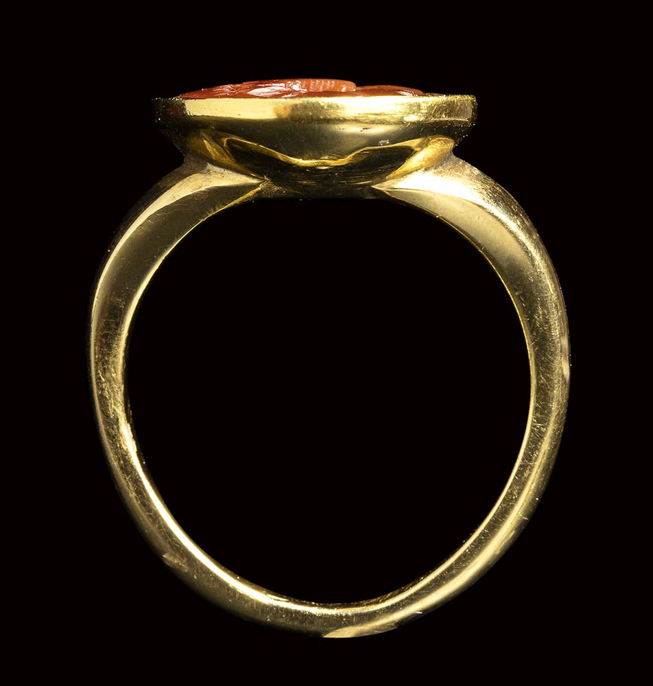A roman carnelian intaglio set in a gold ring. Allegory of Zeus Sarapis.