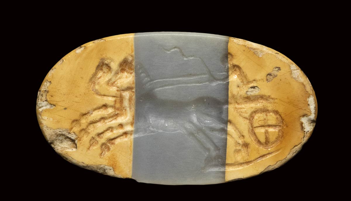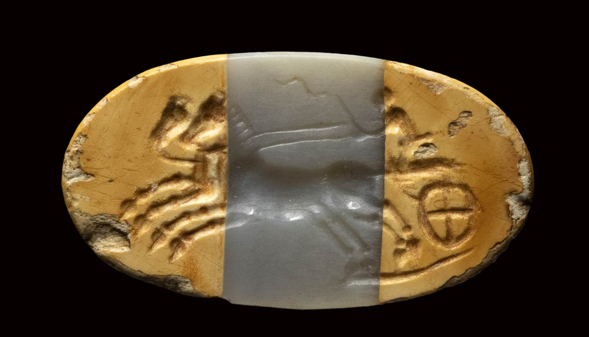 A roman republican burnt agate intaglio. Biga.<br><br>1st century B.C.