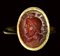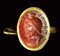 A fine roman carnelian intaglio mounted in a modern gold ring. Bust of Serapis with greek inscriptions.