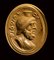 The modern 22k mounting with rounded hoop, flatten within is extending with broader shoulders and conical box-setting containing a large oval carnelian intaglio. The scene depicts the bust of the god Serapis, facing left. He is characterized by a beard made of curly locks, short hair tided with a band and crowned with a modius. The eye is large and wide-open, the nose is straight and small, the mouth is opened. He wears a draped cloak on his shoulders. Around, greek letters ΔΙΟΔω Ρ ΟΛ. Gold mark inside the hoop.