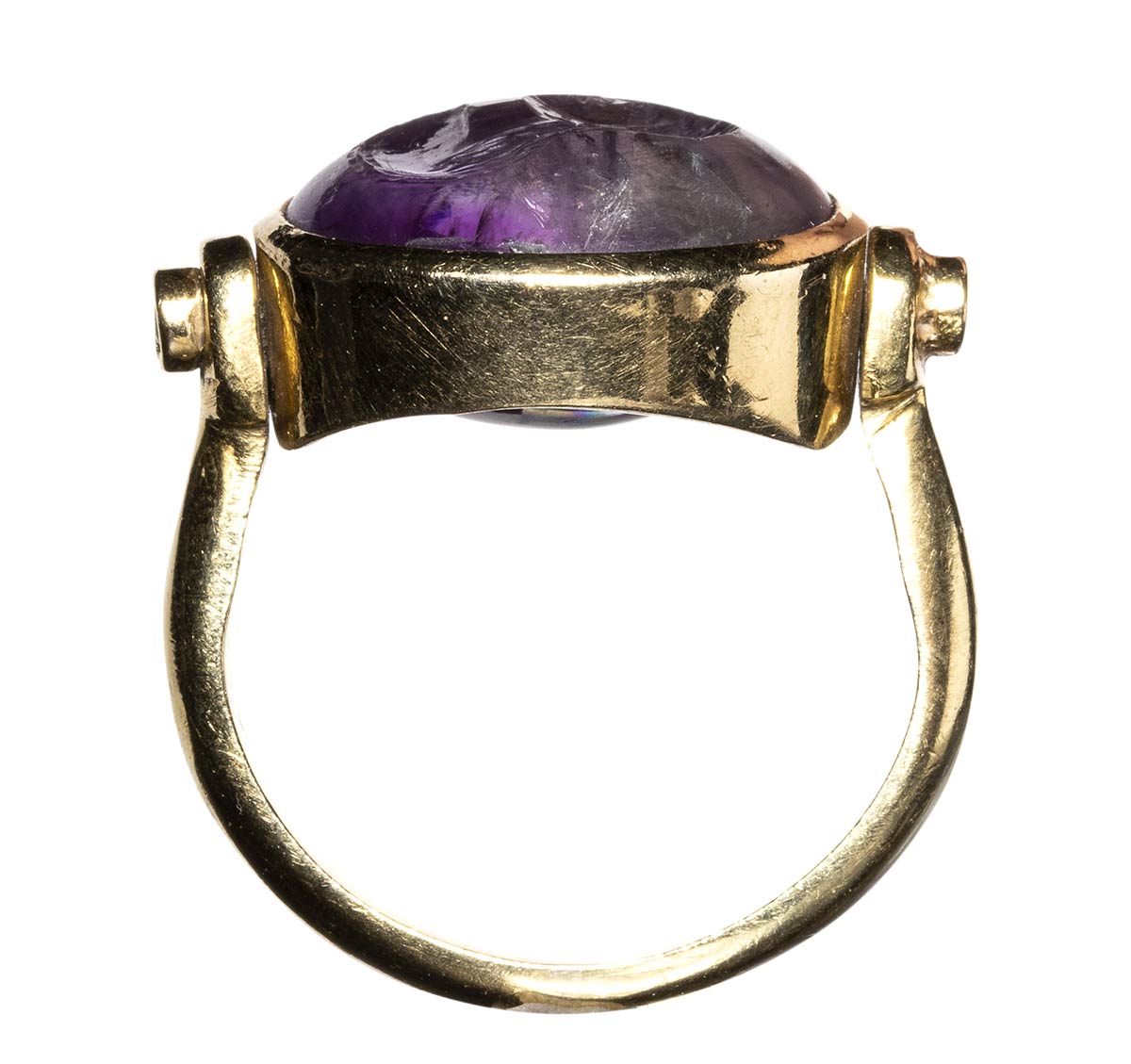 Lotto 189 | A roman amethyst intaglio set in a modern gold ring with diamonds. Bust of Nereid. <br><br>1st century B.C. - 1st century A.D.