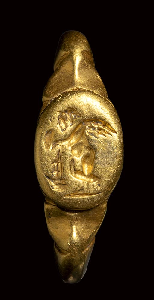 Lotto 202 | A late roman engraved gold ring. Funerary Erote. Late 2nd - 3rd century A.D.