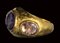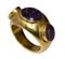 A large roman gold ring set with three amethyst intaglios. Eagle, Male portrait with cornucopia and a sow.