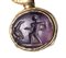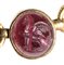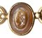 Composed of a long chain with 20 gold snakes, each one intertwined in the infinity-shape with three flowers. Suspension hoop on each side of these holding an oval box-setting set with an intaglio or a cameo. From left to right; amethyst intaglio : eagle and man, carnelian intaglio: crab, three-layered agate intaglio: portrait of Serapis, carnelian intaglio: gryllos, carnelian intaglio Fortuna-Tyche, carnelian intaglio: Athena, three-layered agate intaglio: sea-goat with stars, carnelian intaglio: Fortuna-Tyche encrowned by Mercury, nicolo intaglio: double portrait of Isis and Serapis, eliotrope intaglio: mummiformed Osiris, three-layered cameo: Osiris canopic jar (crown missing), two-layered agate cameo: panther, carnelian intaglio: Victory and armour, bloodstone intaglio: bust of Ceres, carnelian intaglio: Dioscures, green chalcedony intaglio: Bacchus with panther, banded agate intaglio: seated warrior, garnet intaglio: griffin, carnelian intaglio: crouched dog, three-layered agate intaglio: head of boy. The mounting renaissance style set with these roman stones reminds the work of Louis Wiese (1852-1923) son of the famous jeweller Jules Wiese, well-known for his ornamental repertoire of the Middle Ages and the Renaissance. WIESE’s jewelry has a strong sculptural character always inspired from original ancient models. Very fine condition.