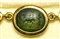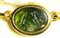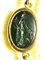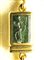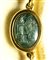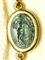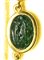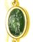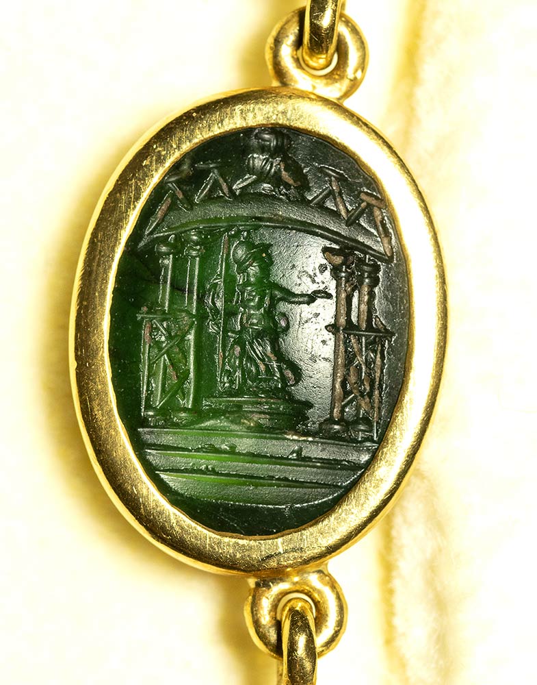 A fine gold necklace with 17 roman green chalcedony intaglios and rubies. Various subjects.