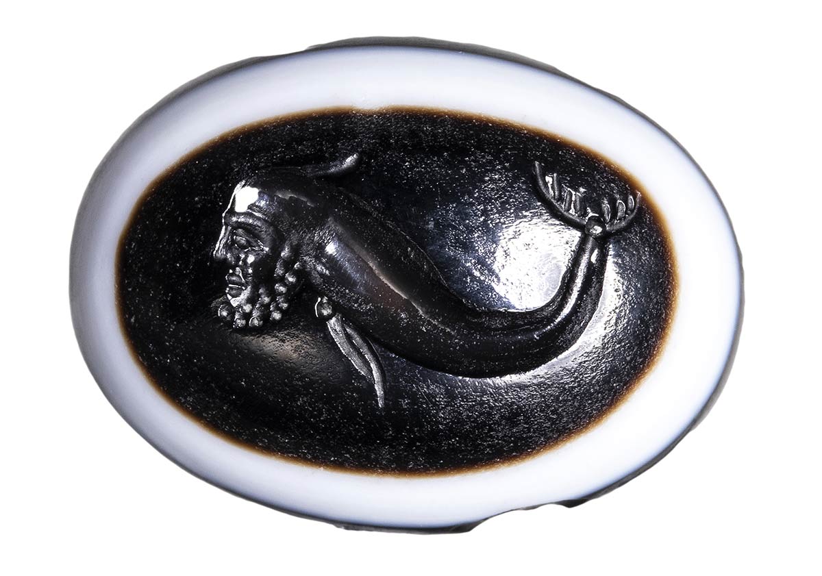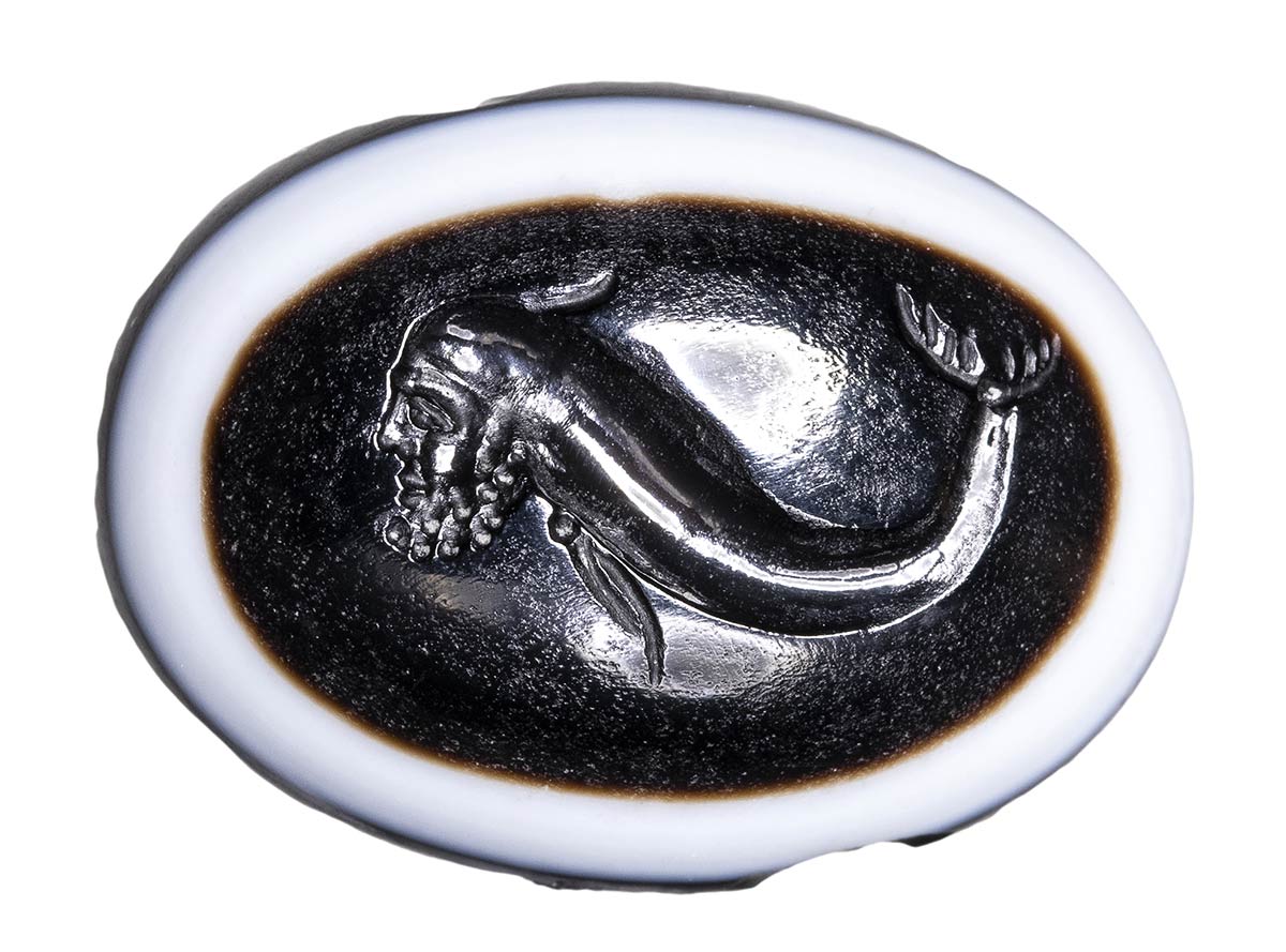 A roman three-layered agate intaglio. Hybrid sea creature. 1st century B.C. - 1st century A.D.