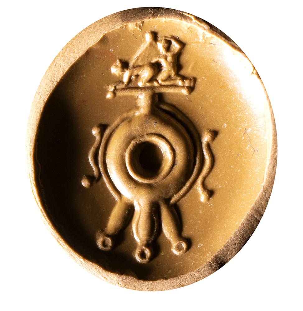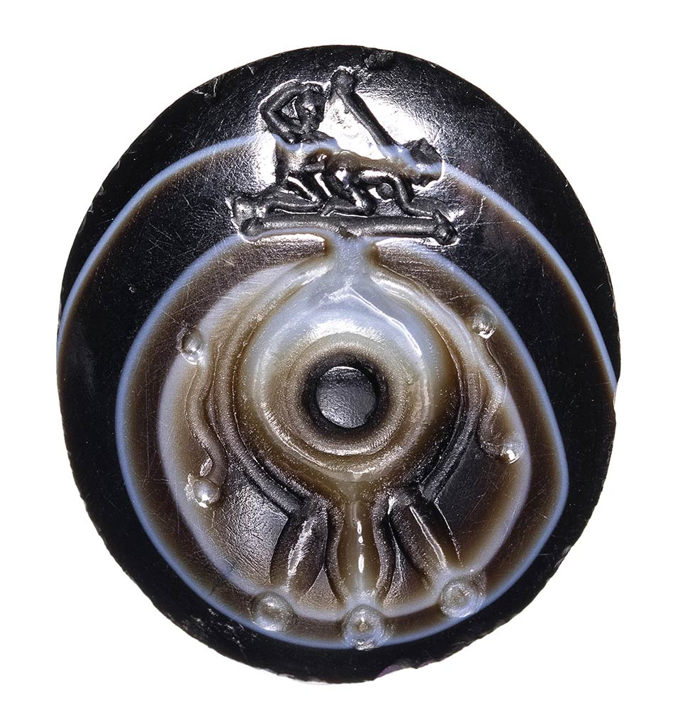 A roman sardonyx intaglio. Erotic scene on an oil lamp. <br><br>Early 1st century A.D.
