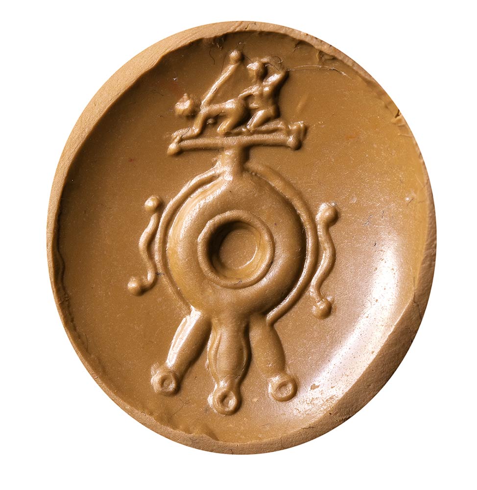 A roman sardonyx intaglio. Erotic scene on an oil lamp.