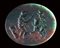 Two gladiators are facing each other, over a ground line. Both are equipped with similar armament, but with variants. The fighter on the right has an helmet with a closed visor; left arm armed with a curved sword and covered by protection; belt and pelvis protection; greaves and closed shoes. The warrior on the left always has a similar helmet with a closed visor, greaves, belt but has leather belts on his back that hold a breastplate (?); arm armed with a sharp pointed sword with arm protection. The left arm instead holds an ax. His shield is on the ground. His opponent instead protects himself from his violent attack with the shield. The scene is strongly inspired by Roman mosaics. The choice of the dark green heliotrope with vivid red inclusions, to symbolize the blood, the death and the violence of the clash, makes this rare representation very interesting and extraordinary. Parallels: AGKM (Kunst Museum), n. 1701; AGDS Berlin, n. 482. E. Z-Dihel, Die Gemmen und Kameen des Dreikonigenschreines, n. 259 (in heliotrope. The gladiator is described as a "secutor"). AGDM (Munchen) n. 2384. L.P.B. Stefanelli, La Collezione Paoletti, vol. I, n. 560-561 for a very close type (tomo II, cas. 8).