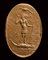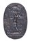 The scene depicts the jackal-headed Anubis in armour, standing to left on a crocodile; also to left. Both arms raised and bent in elbow, the left hand holding a whip, right hand a trident. Above Anubis, two eight-pointed stars and a scorpion. Around the figure and in the free field: letters and charakteres including a pentagram and a star. Groundline. Slight chips on the edge of the stone. Traces of deposit inside the engravings. Parallel: The Campbell Bonner Magical gems database, CBd-2575