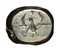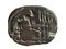 Longitudinal crack visible on the stone (stone is broken in 2 pieces). A series of hematite intaglios show a reaper leaning forward to cut tall stalks of wheat with his sickle; behind him rises a tree branch. On most of them, we found inscriptions on the reverse, indicating they are amulets against hip pain. This lies in the fact that this type of work presupposes that one does not suffer from the hips. Hematite was a stone appreciated for its ease in breaking, because hematite dust was frequently used in medicine. The breaks of hematite gems can testify to a medical rite in which a part of the stone was pulverized to make a medicine.