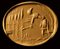 A) Reaper wearing high cap and kilt, stooping to right to cut five stalks of grain with a long-handled sickle. Behind him, on the left, a tree.